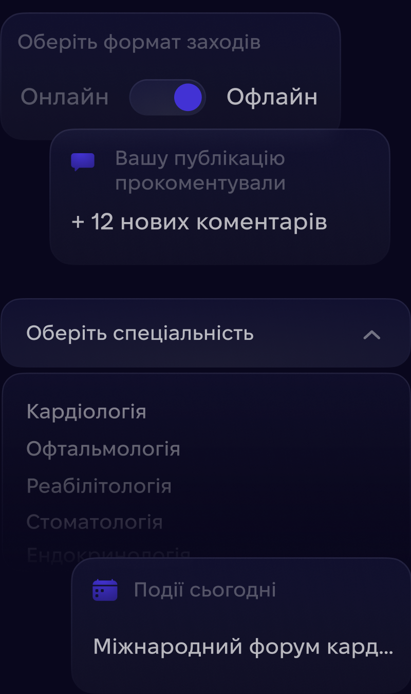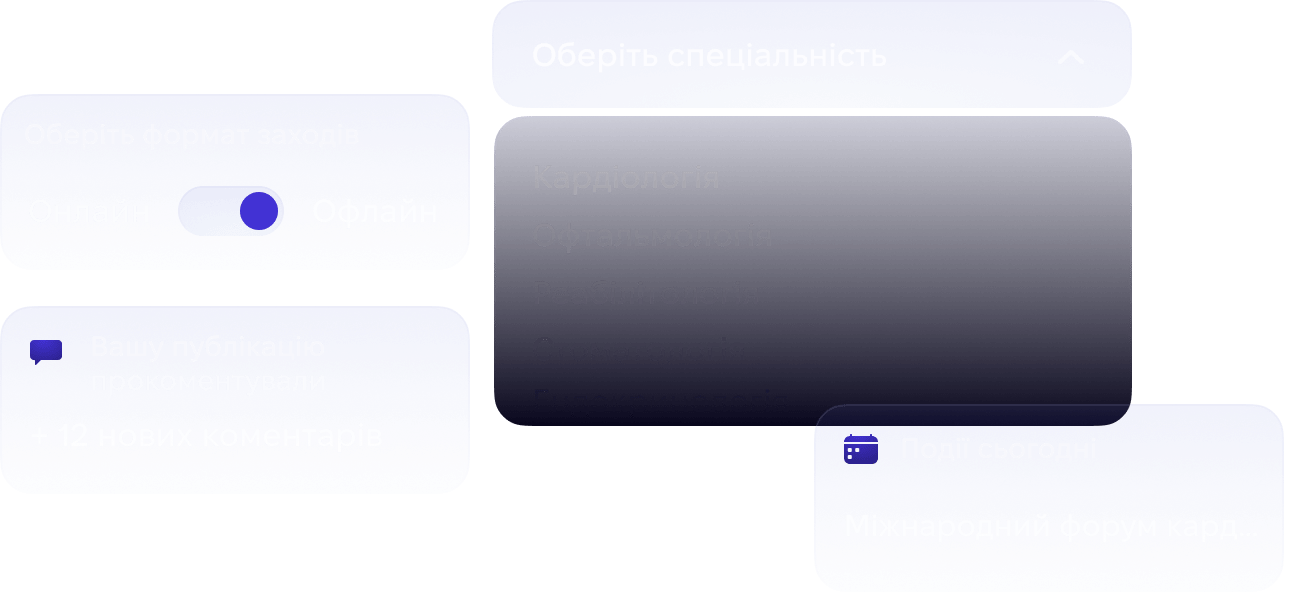 Всі спеціальності та рівні лікарів, відкриті спільноти закриті клуби, обговорення публікацій, кейсів та просто спілкування.